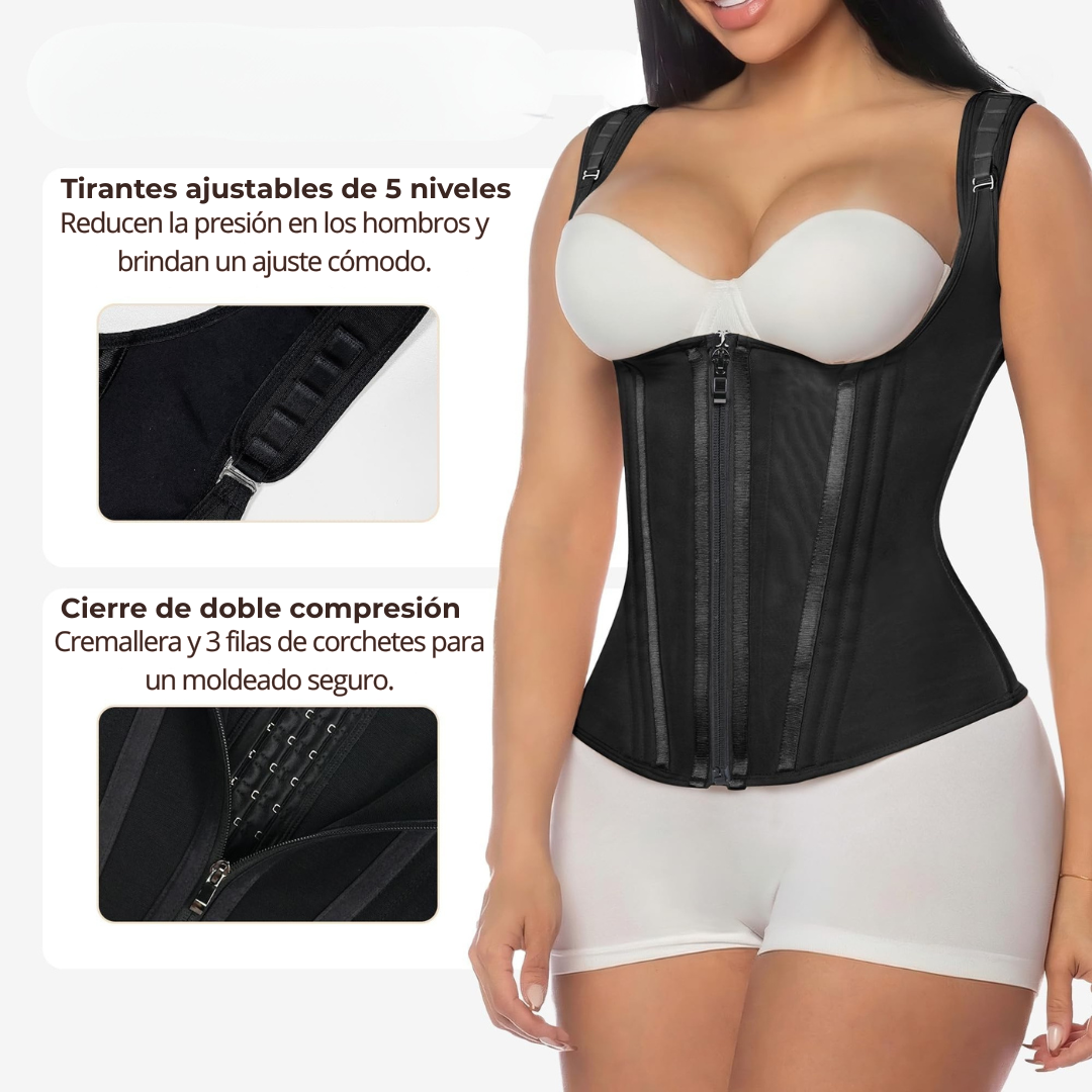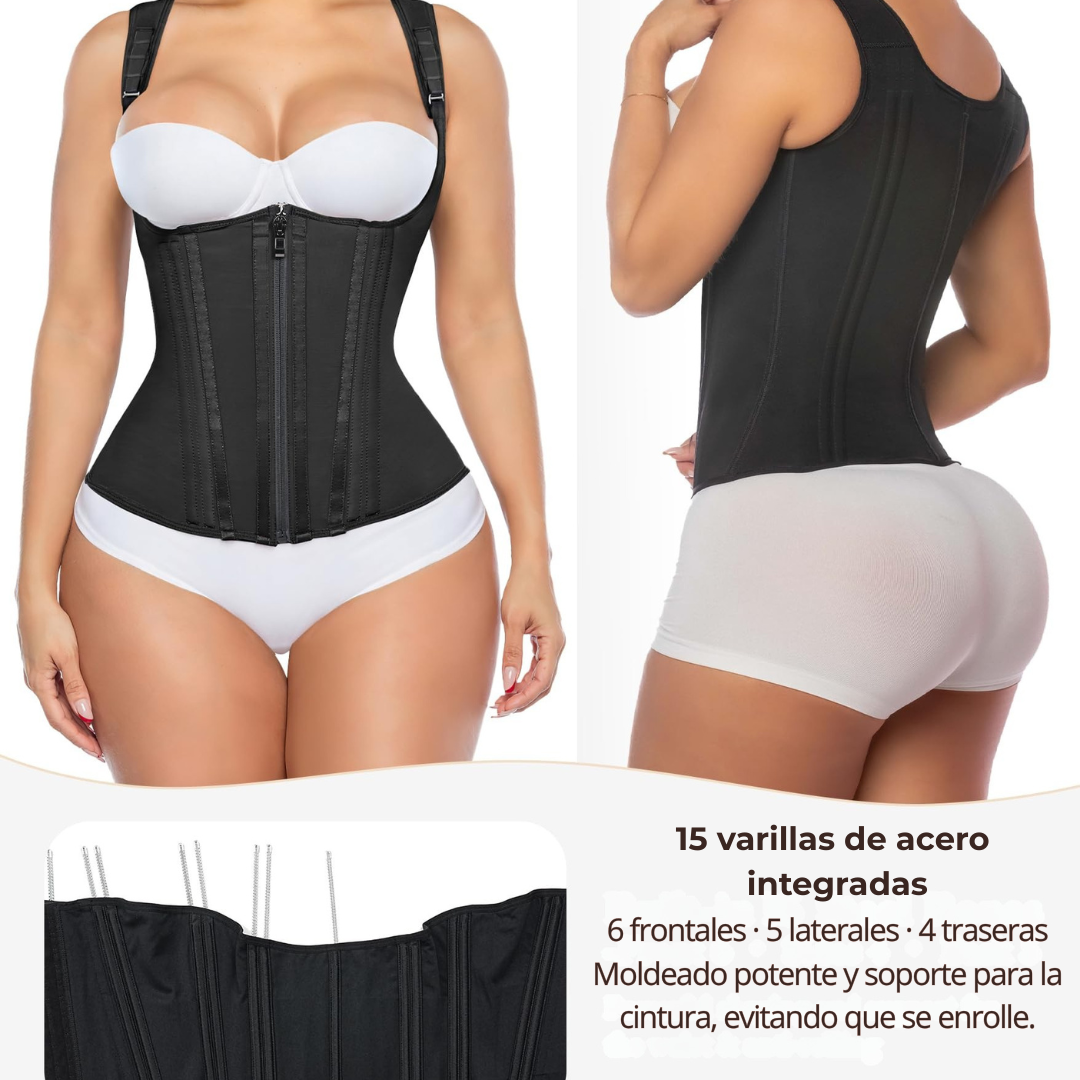 Ενσωματώνει 15 ευέλικτες ράβδους τύπου memory-steel κατανεμημένες στη μέση, παρέχοντας πλήρη υποστήριξη και βοηθώντας σταδιακά να διαμορφωθεί μια σιλουέτα τύπου κλεψύδρας.