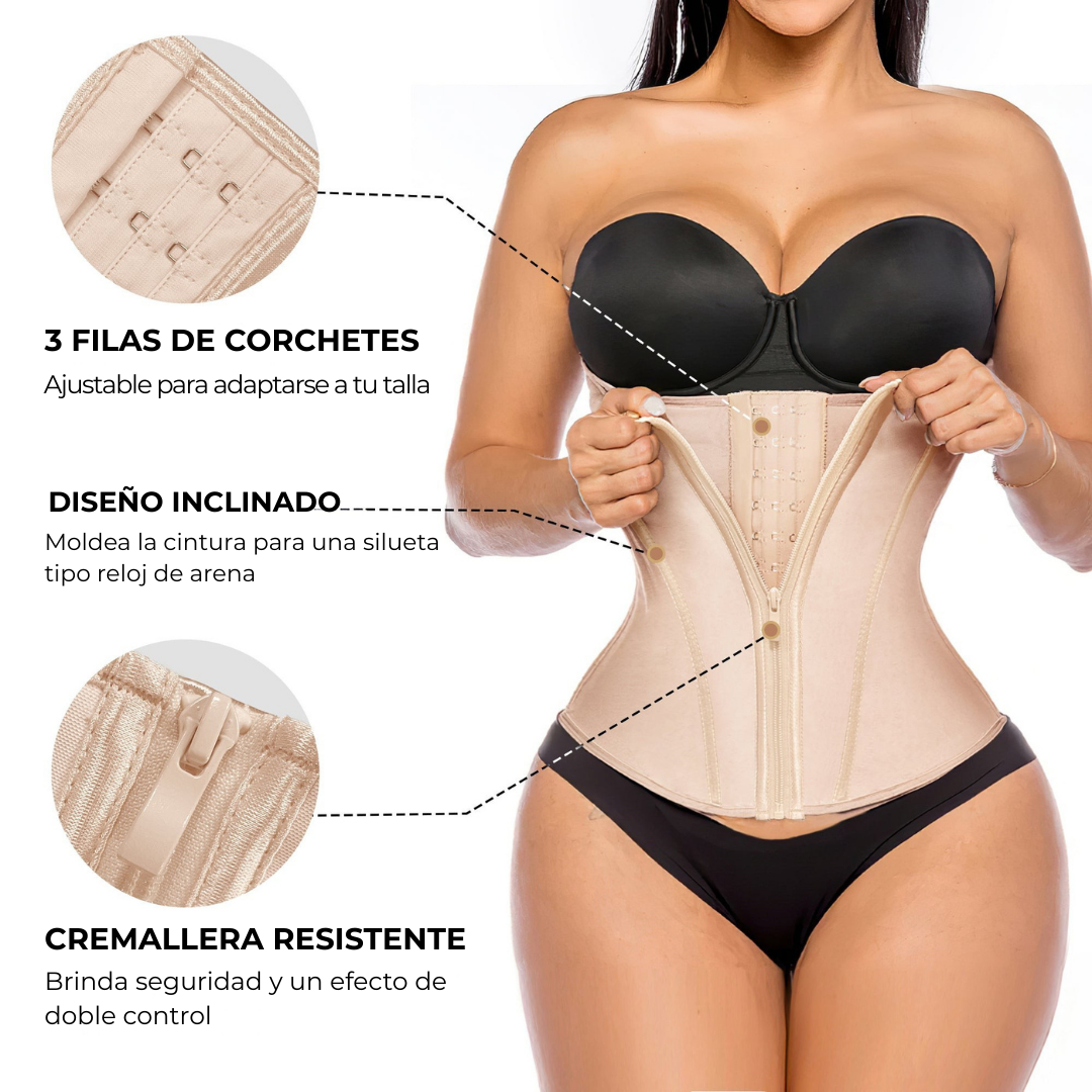 Διαθέτει μπροστινό φερμουάρ σε συνδυασμό με ρυθμιζόμενα κλιπ τύπου γάντζου, προσφέροντας διπλό έλεγχο μέσης και άμεσο σχηματιστικό αποτέλεσμα. Παρέχει ακριβή και σταθερή εφαρμογή, ιδανική για καθημερινή χρήση ή σωματικές δραστηριότητες.